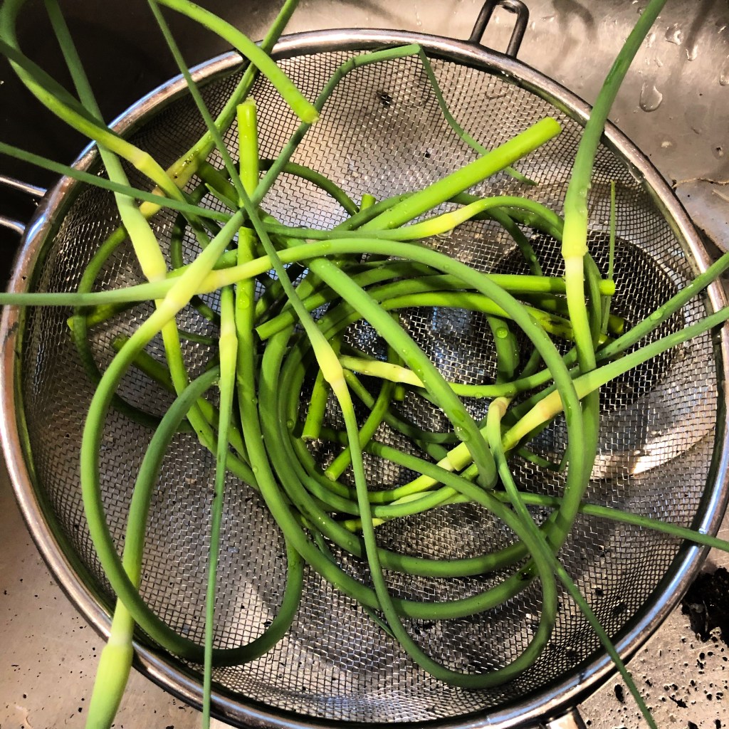 Snap the scapes off to make sure the plant puts it’s energy into the bulb, and hey presto! More free garlicky flavour! You can pickle scapes, chop them up for an omelette or make pesto. I chose to frazzle mine up with some chicken and have them with pasta. They pack a ton of flavour which is more subtle than the bulb, but will still keep the vampires away!