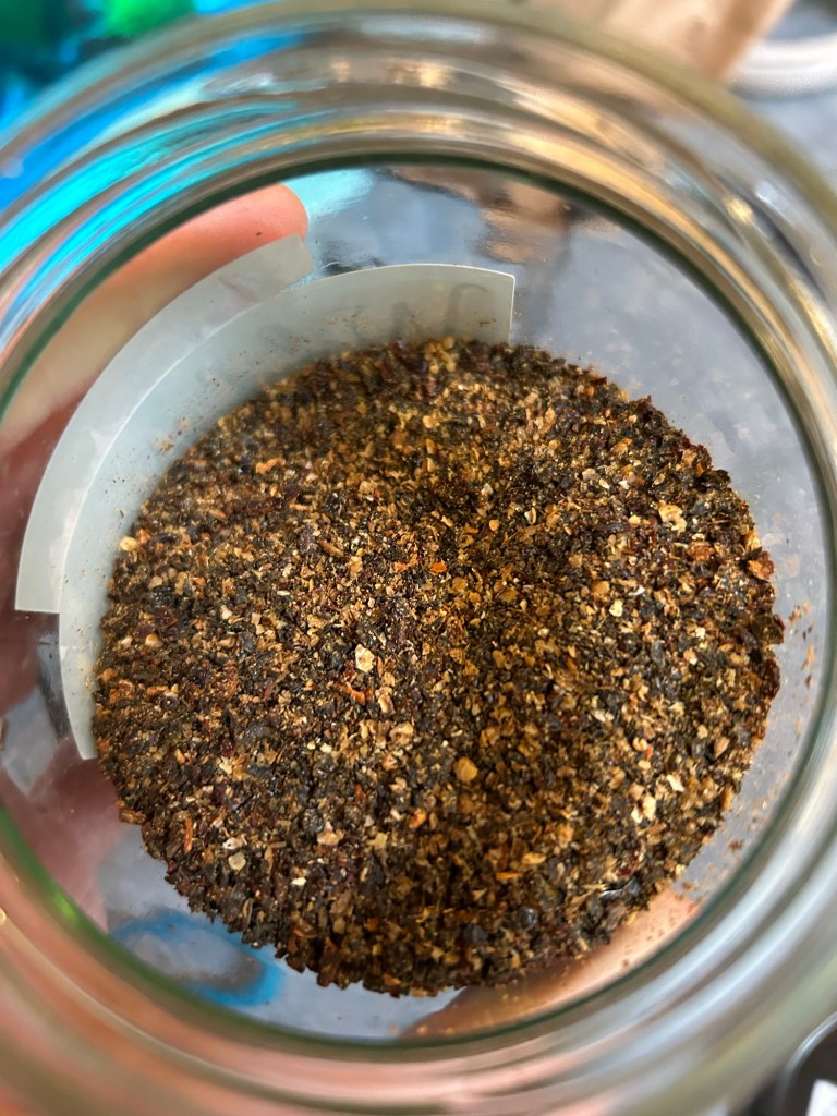 As you can see the finished product is not quite a powder, we prefer ours like this because we love to sprinkle it on all kinds of things, you could blitz it for longer in the grinder and you would get a finer powder, or get a work out and do it by hand with a pestle and mortar. Either way the taste is great.